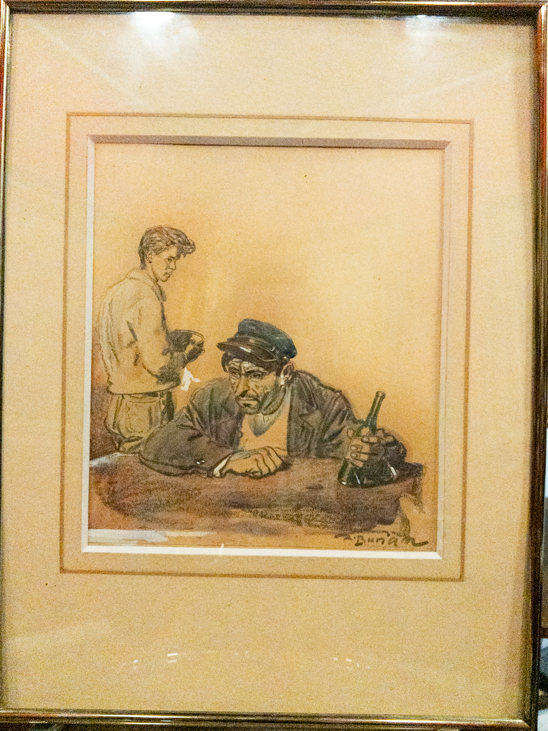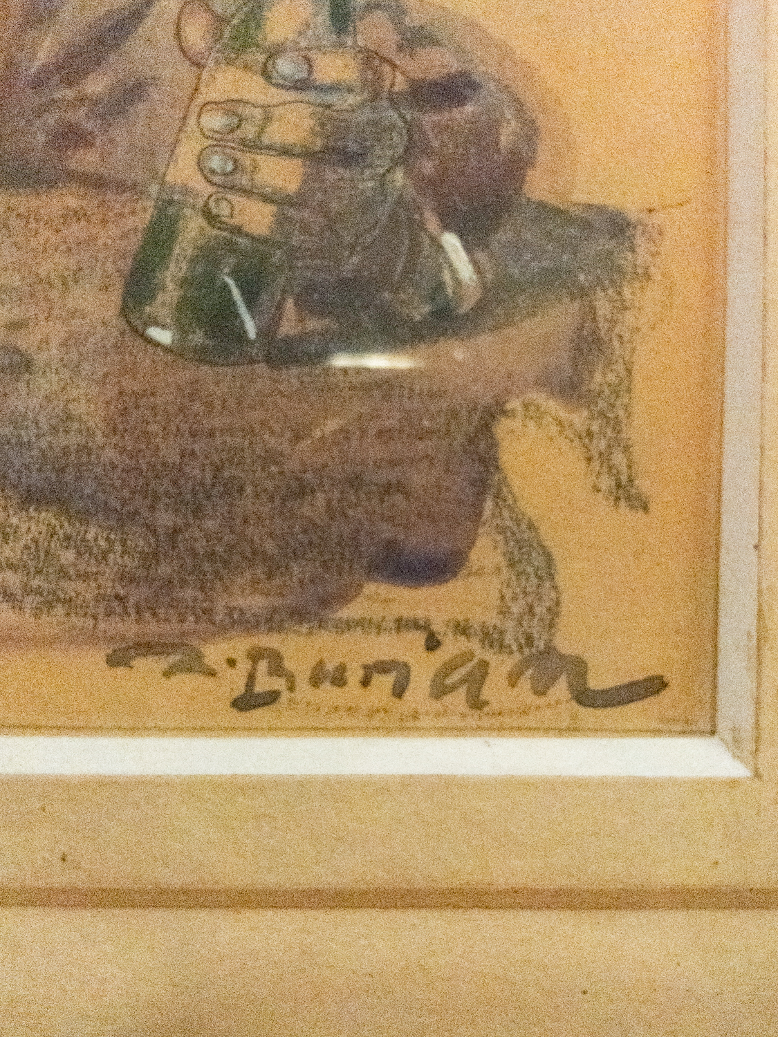 v rámu, paspartě, pod sklem, popis pod paspartou