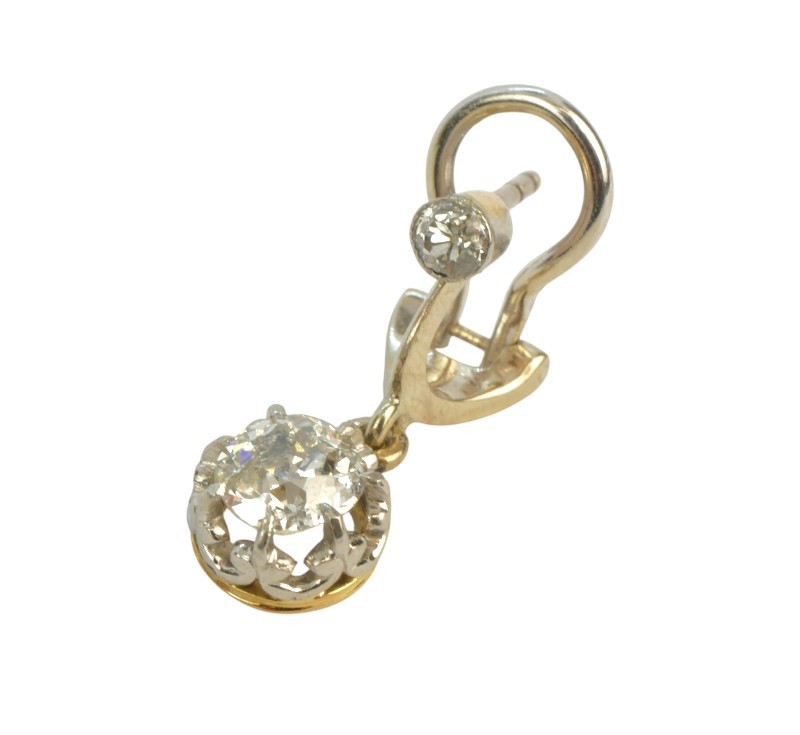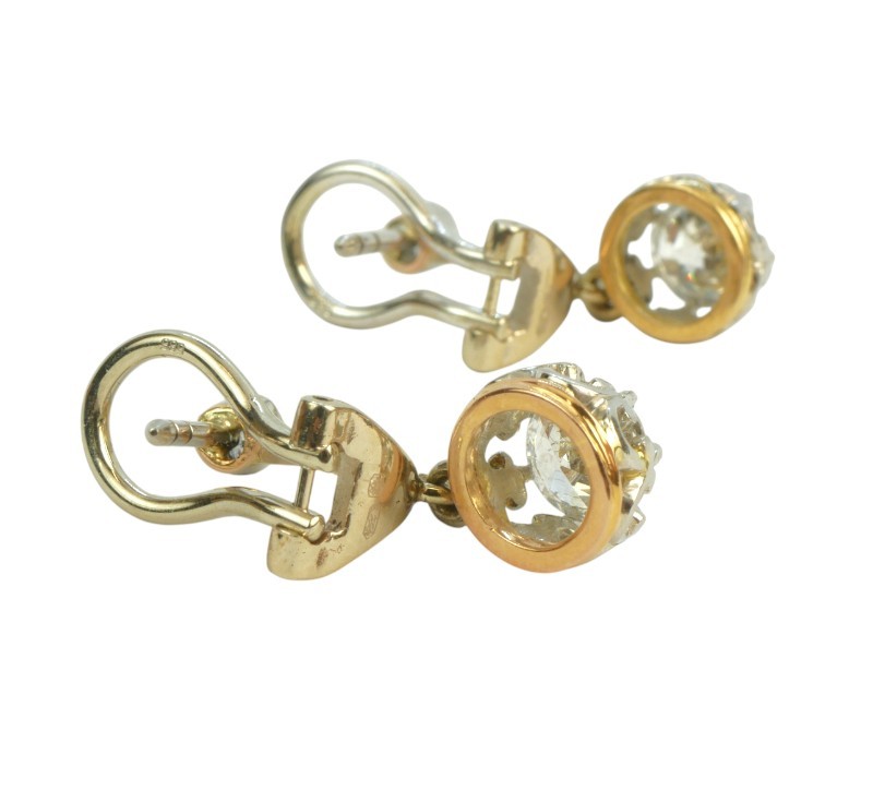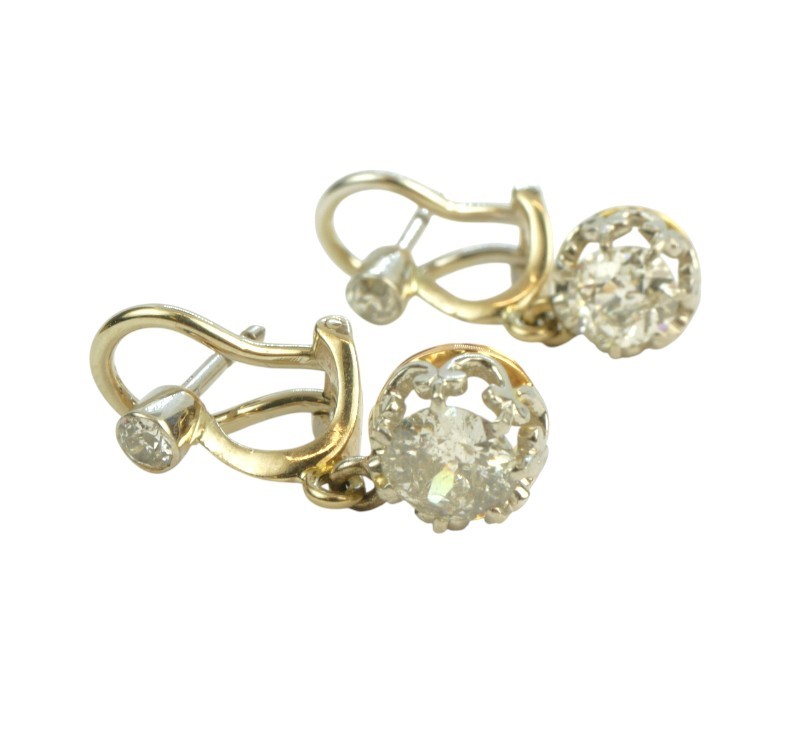 Starožitné zlaté visací náušnice s přírodními diamanty starého briliantového brusu 1,62 ct
