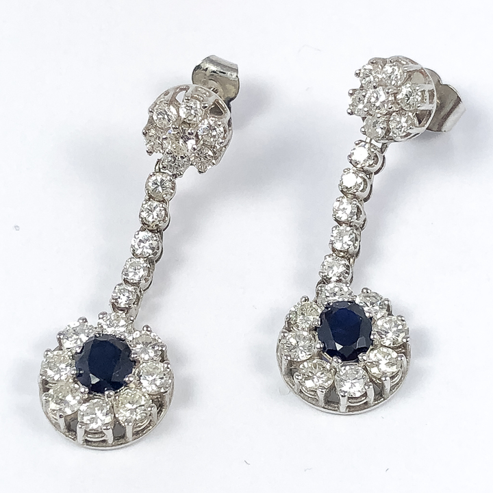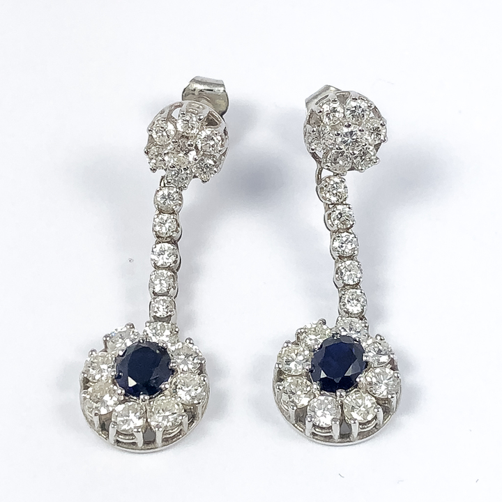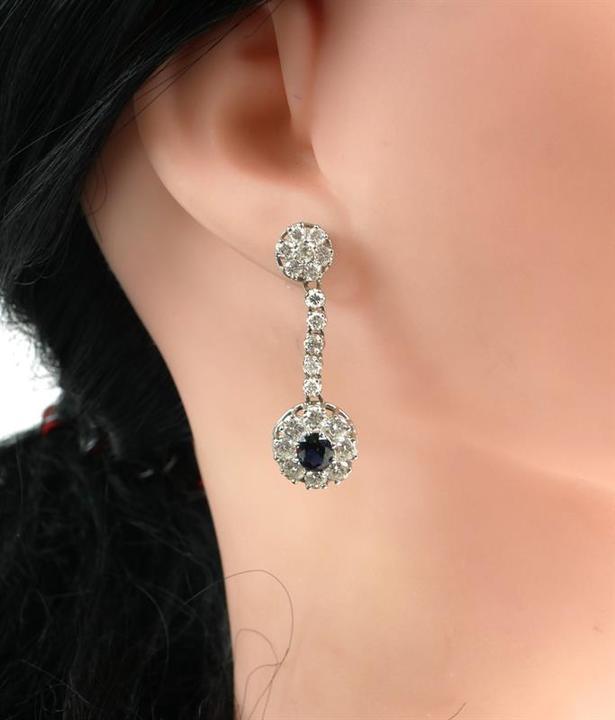 Luxusní visací briliantové náušnice se safíry,