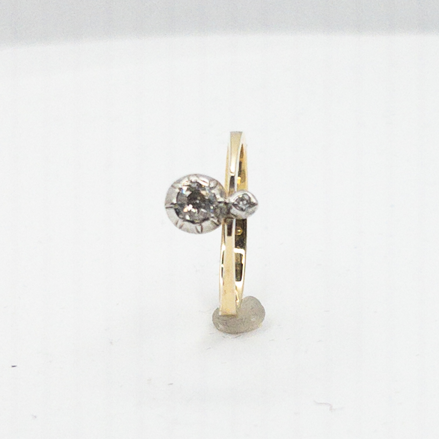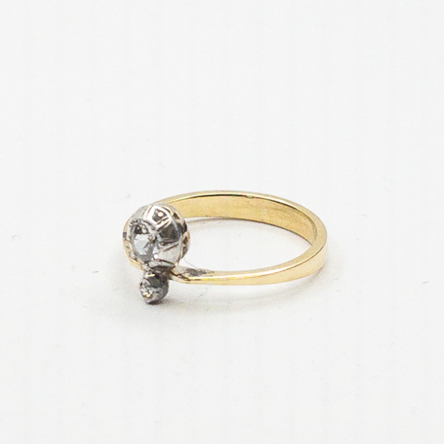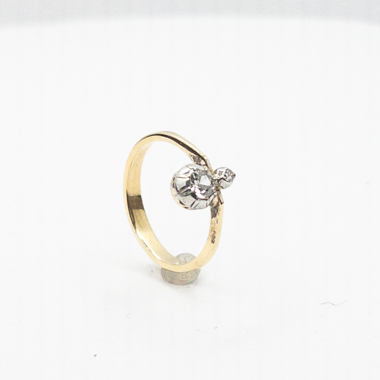 Zlatý prsten osazený dvěma přírodními diamanty briliantového brusu 0,22 ct,
