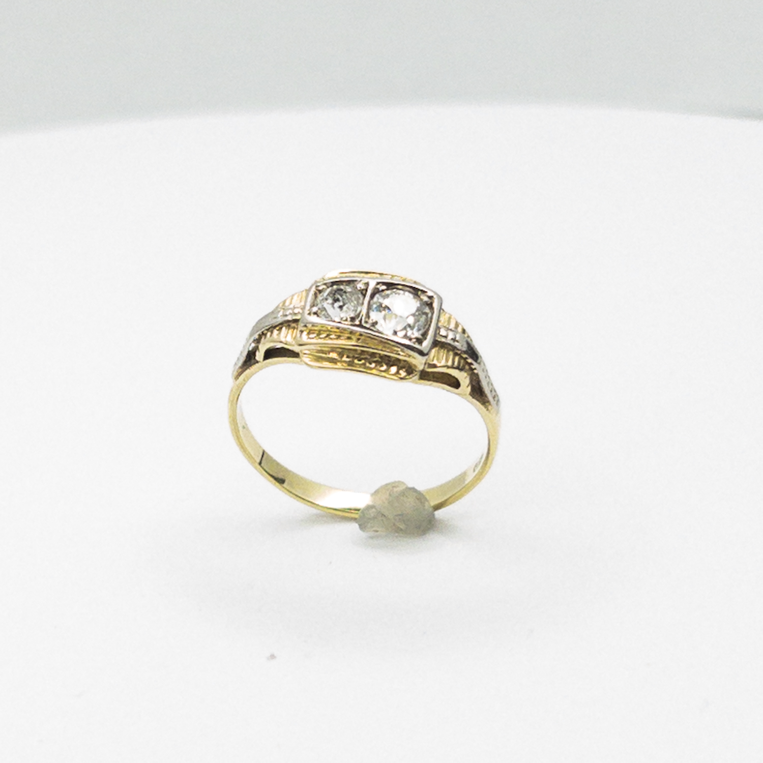 Prsten ze žlutého zlata je osazený přírodními diamanty briliantového brusu 0,30 ct,