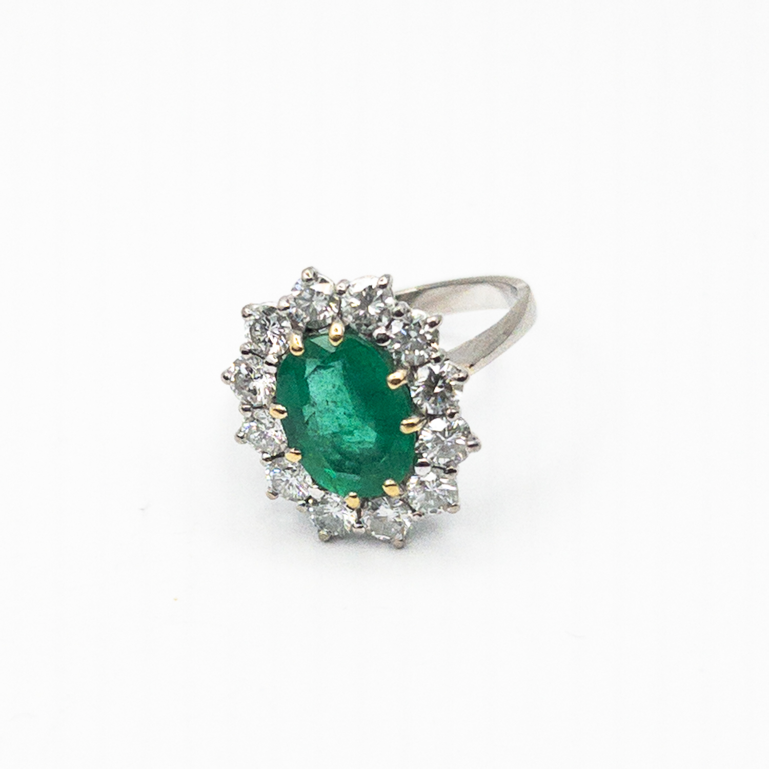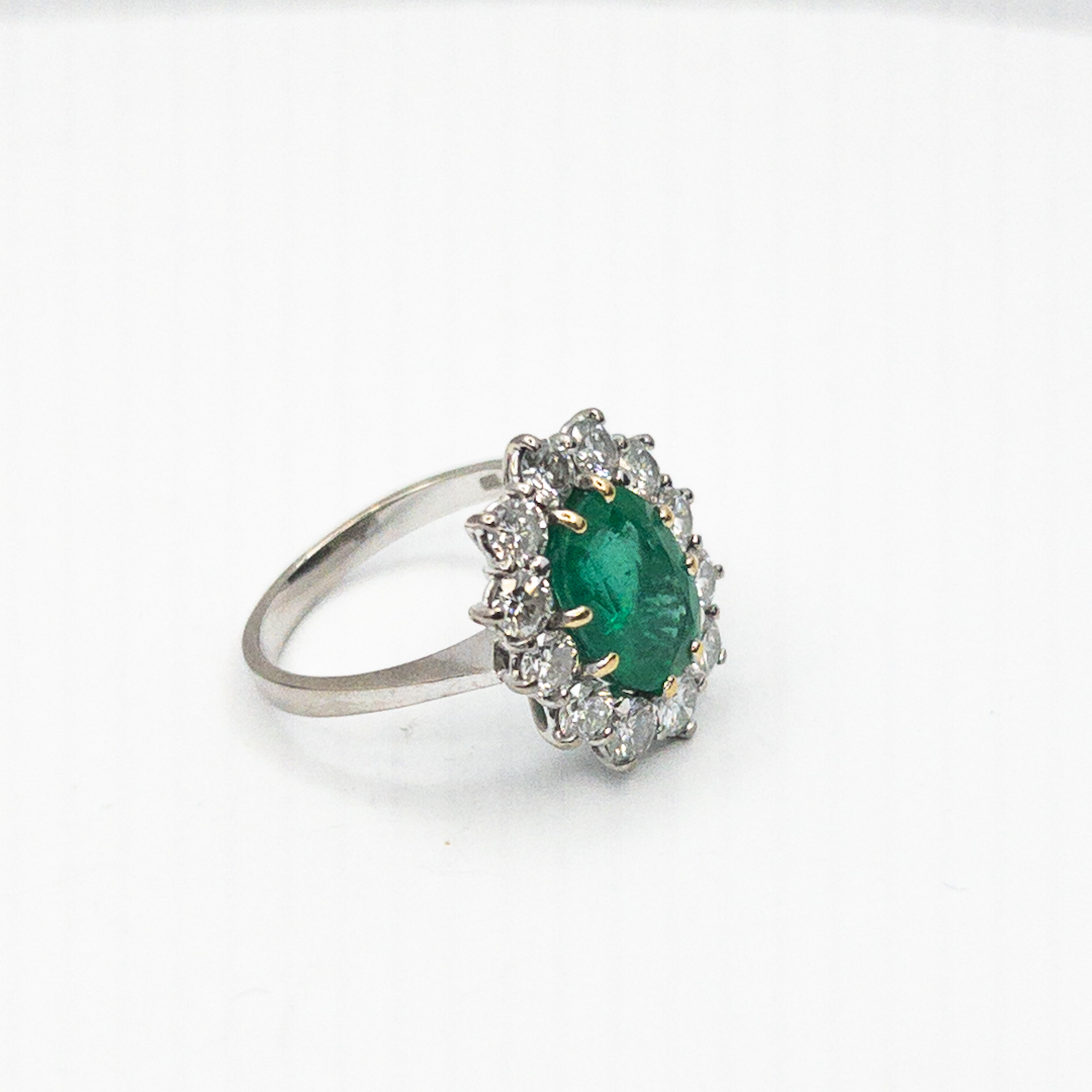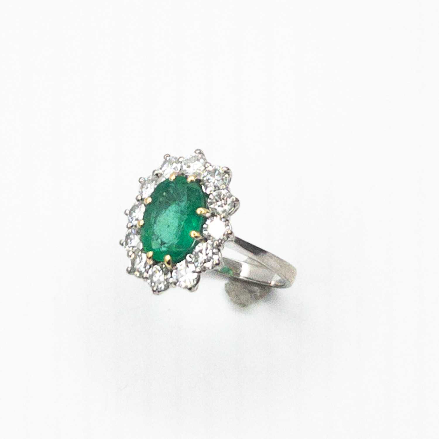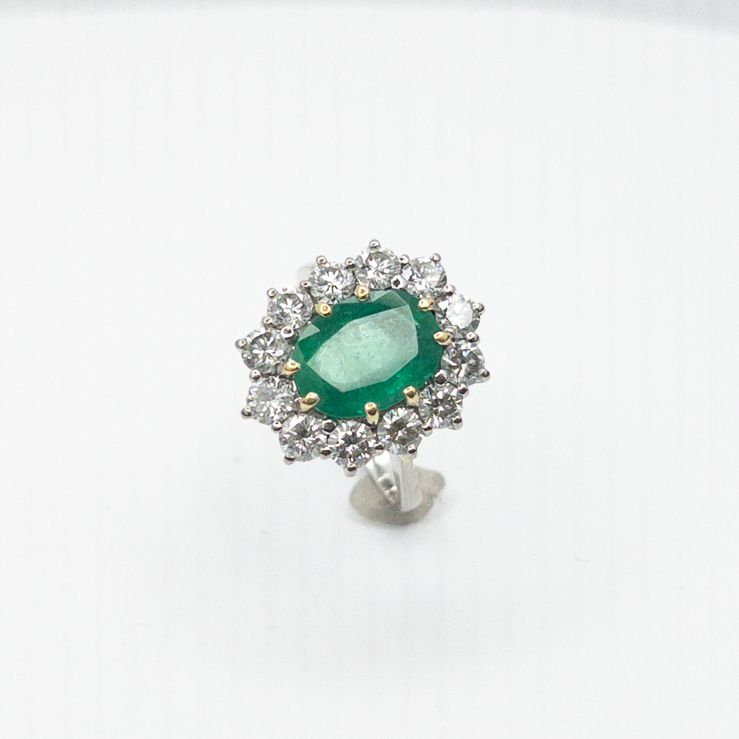 Nádherný, výrazný prsten, osazený krásným oválným fazetovaným přírodním smaragdem o hmotnosti 2,3 ct
