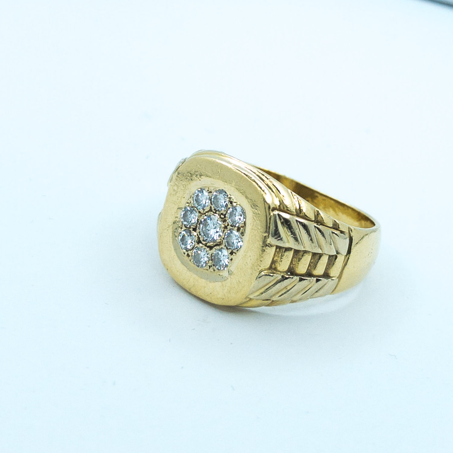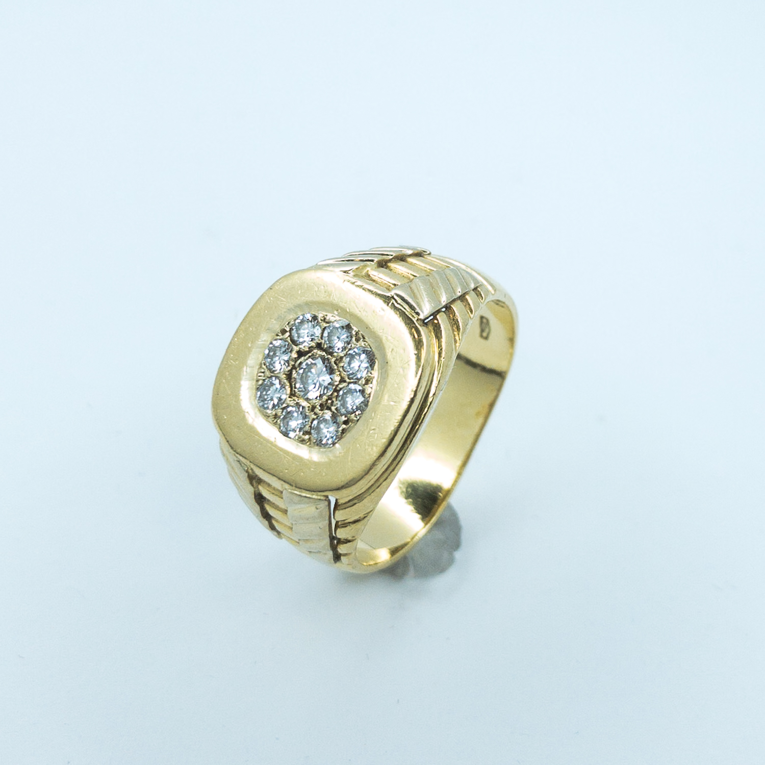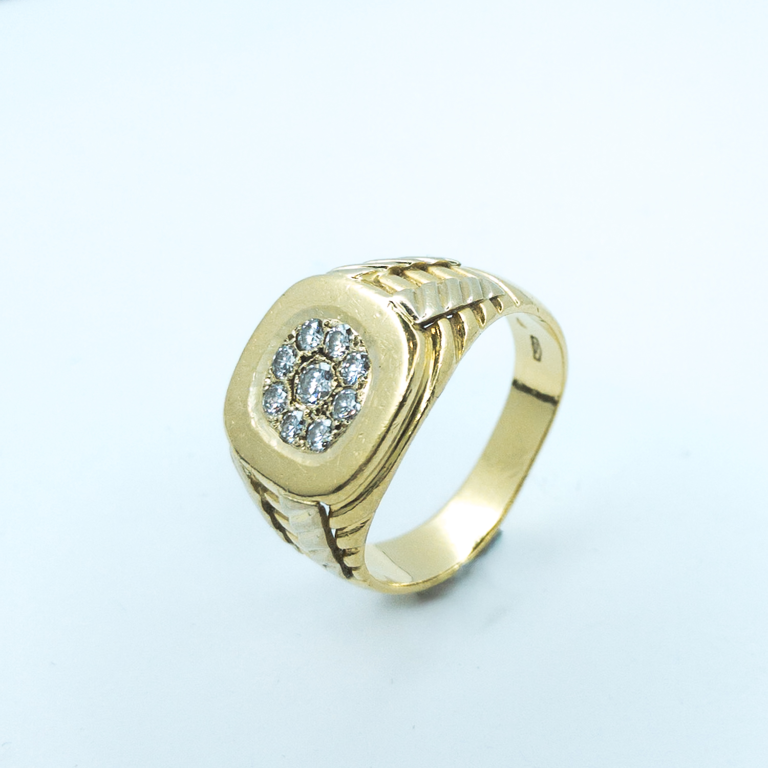 Pánský zlatý výrazný prsten je osazený přírodními diamanty briliantového brusu 0,50 ct,