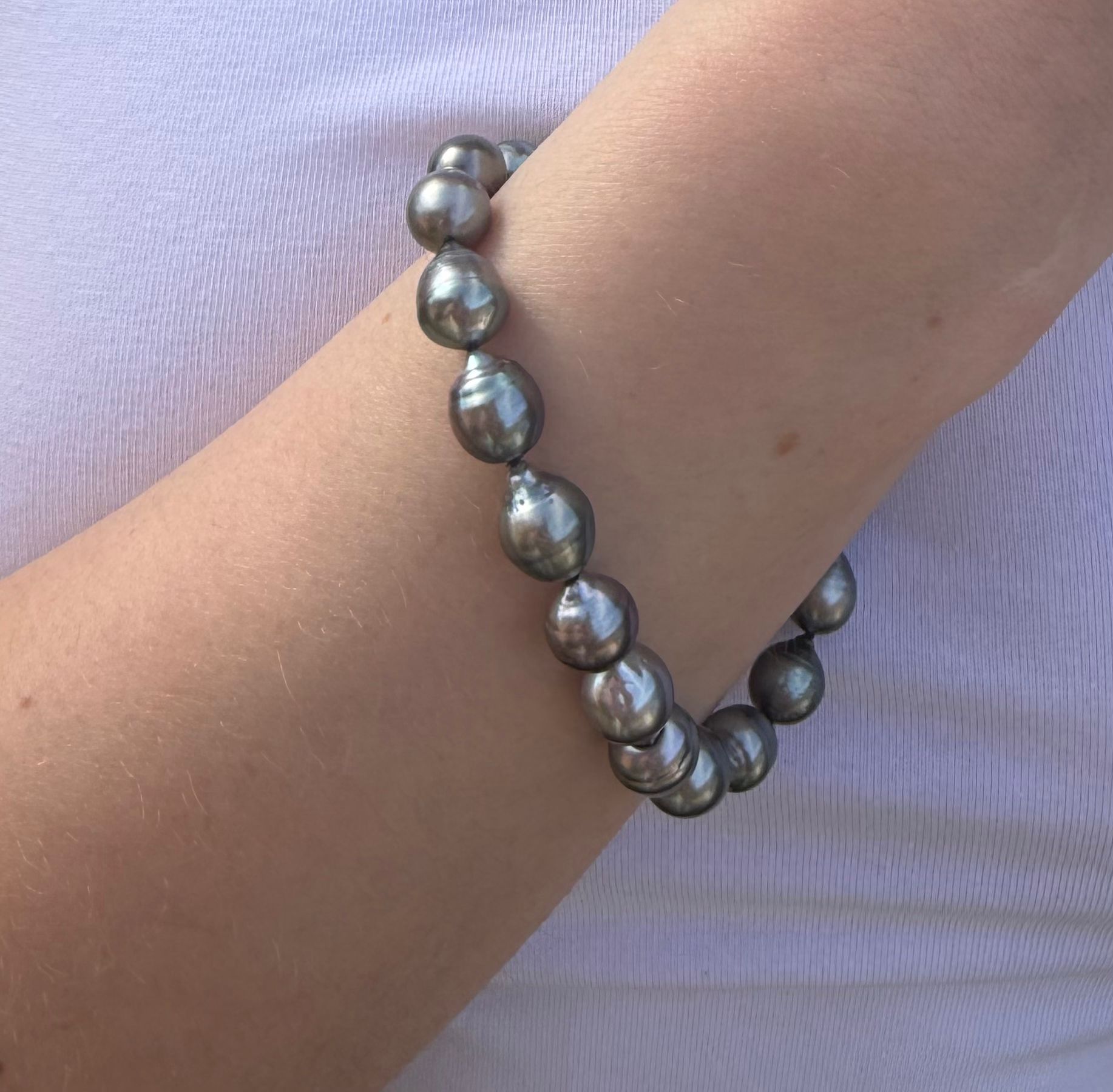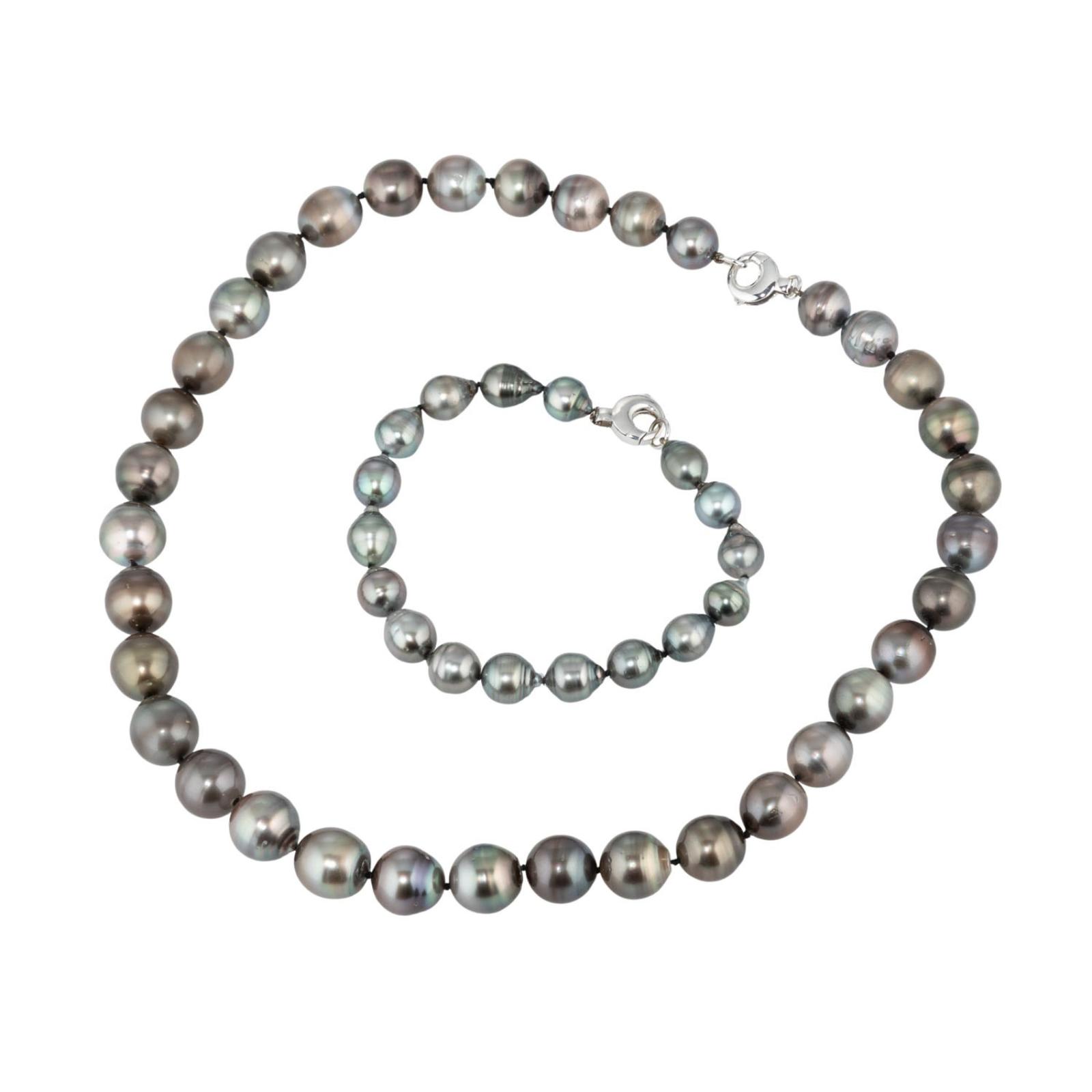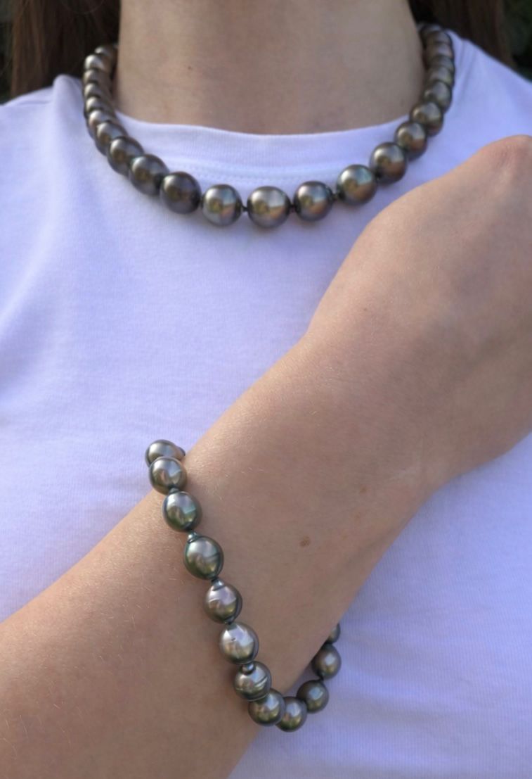 Náhrdelník a náramek z tahitských perel se zlatým uzávěrem,