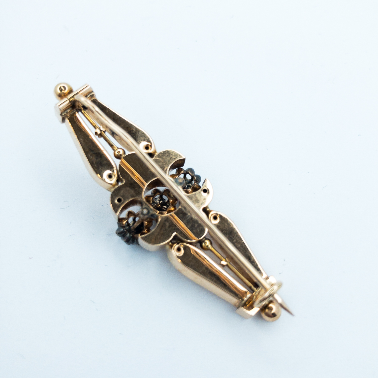 Starožitná zlatá brož s přírodními diamanty jednoduchého holandského brusu,