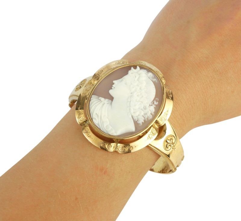 Klasicisní zlatý náramek s kamejí z mušloviny,