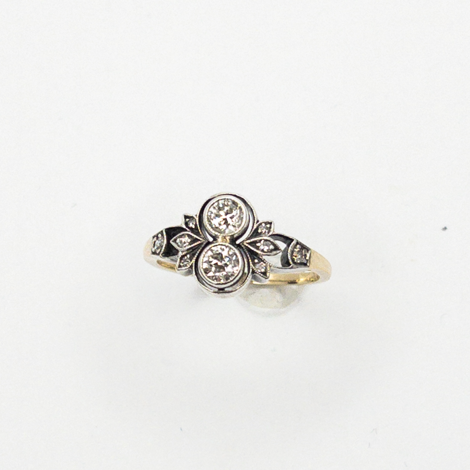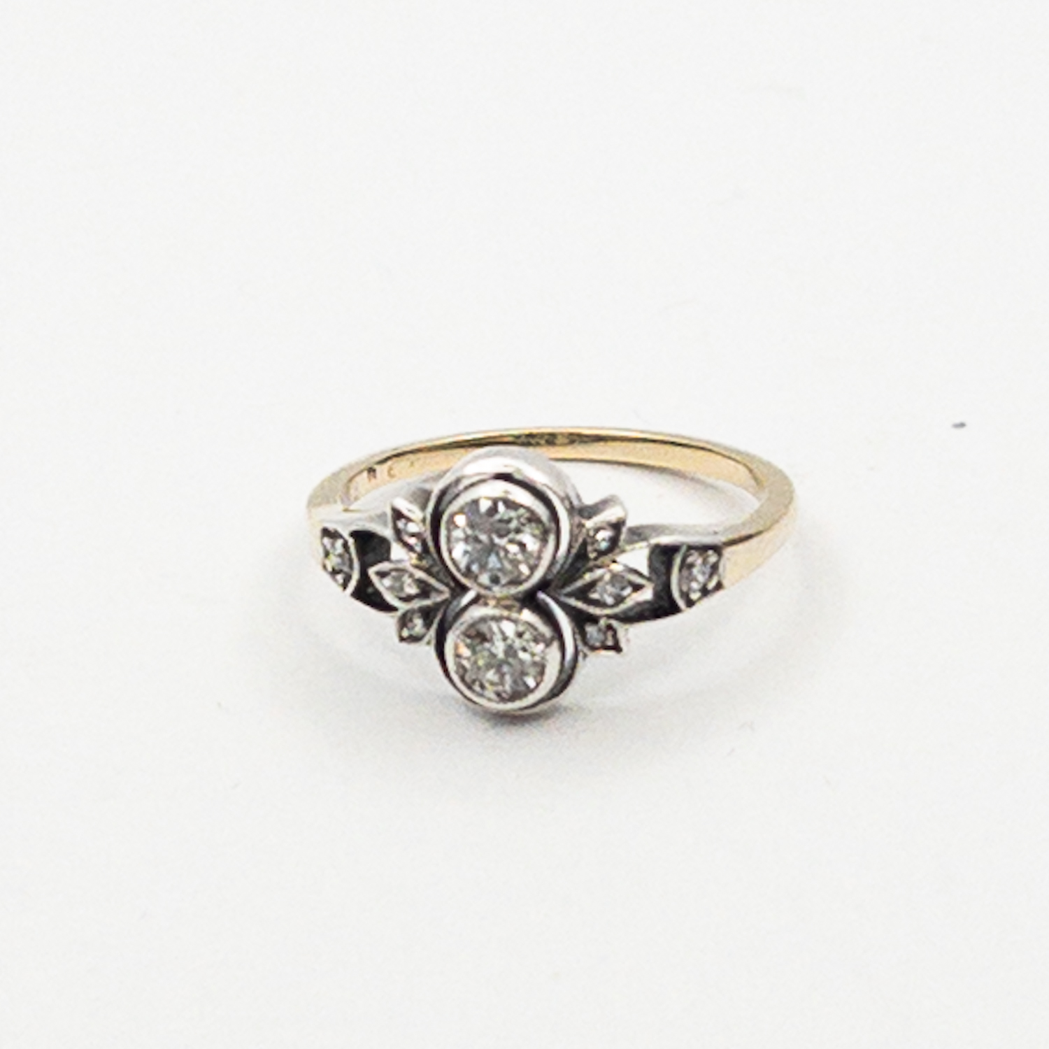 Starožitný zlatý prsten z první třetiny 20. století je osazený přírodními diamanty starého briliantového brusu0,45 ct,