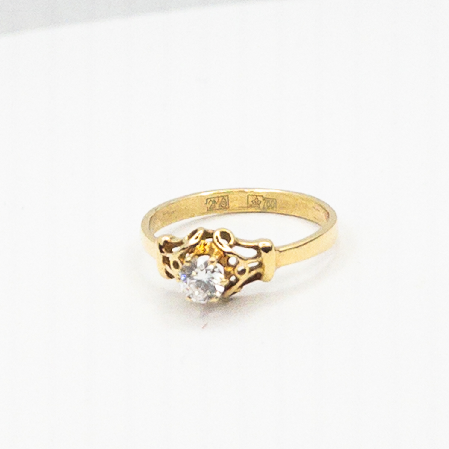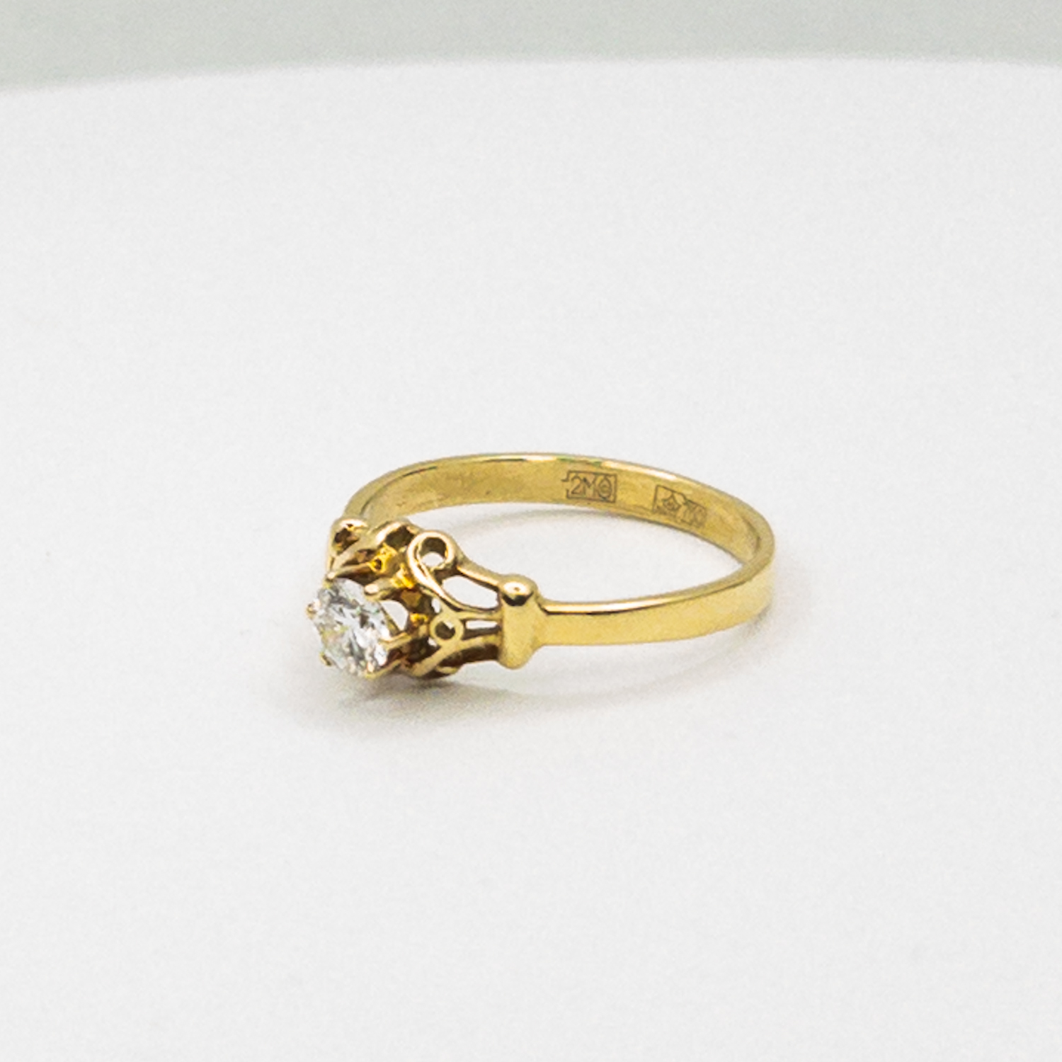Zlatý prsten se solitérním přírodním diamantem briliantového brusu 0,25 ct,